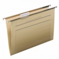 Mimořádně pevný závěsný pořadač Canson Kraft. 100% čistá buničina vyztužená bavlněnými vlákny. Ocelové závěsné tyče pro větší nosnost. Třípolohový zvětšovací držák štítků.Závěsné desky s druky, typ U, dno 30 mm